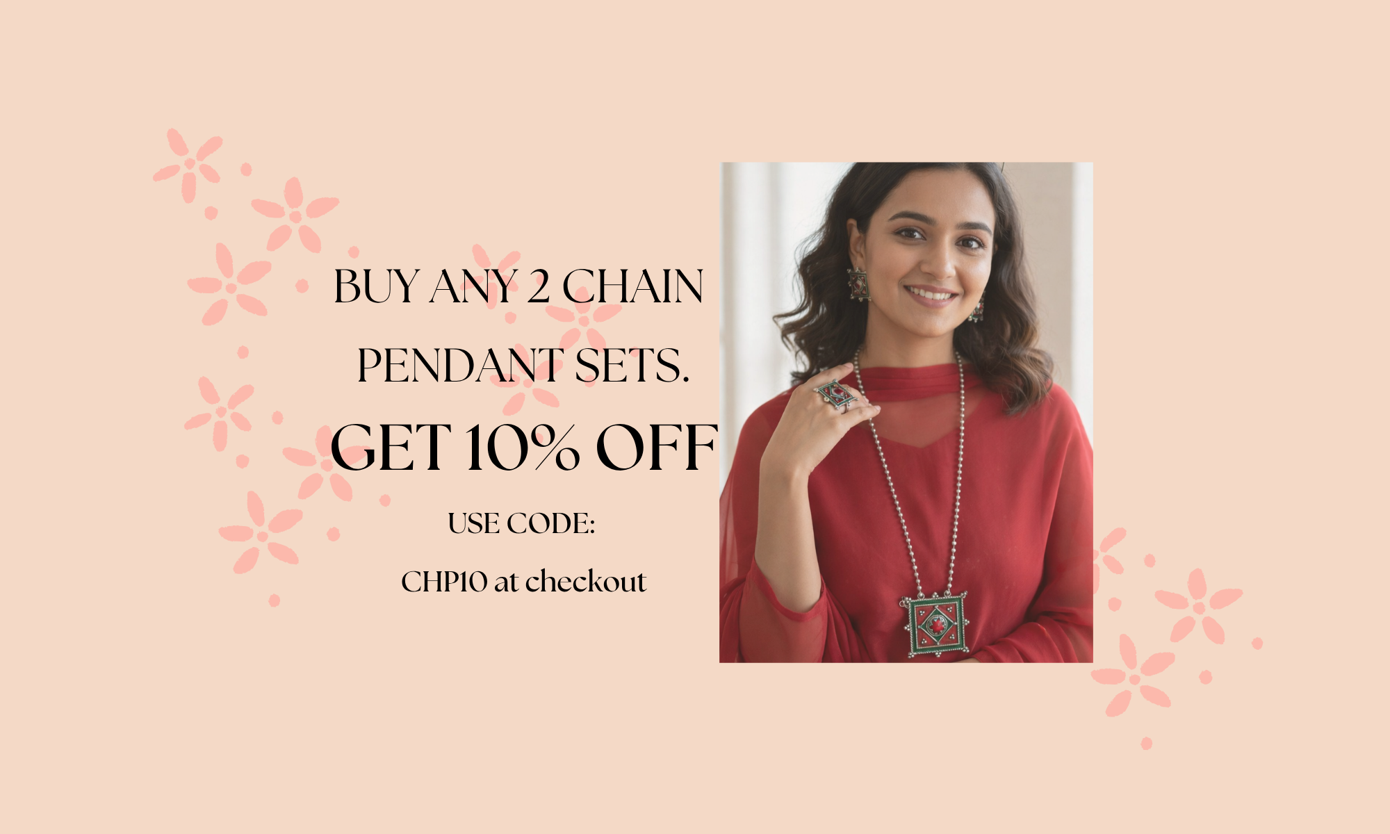 Our beautifully crafted oxidised chain pendants paired with coordinated earrings are an...